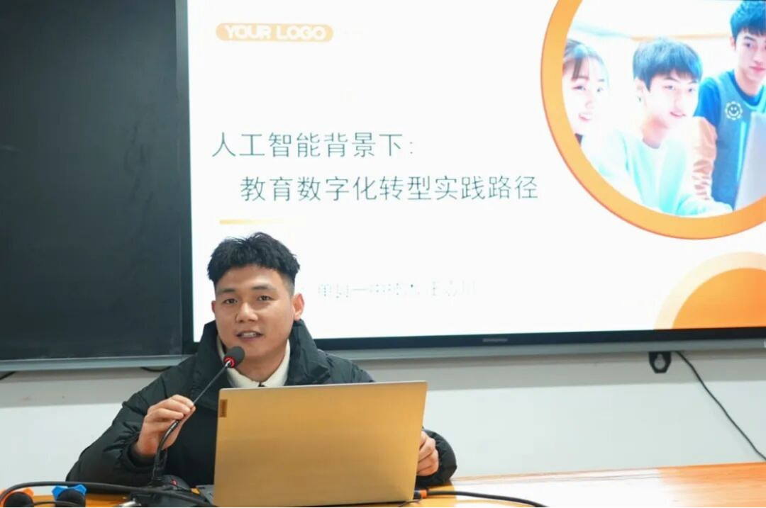 随后,信息技术组王壹川老师作题为《人工智能背景下,教育数字化转型的实践路径》专题报告。他从人工智能助力学习变革、教学提质、育人进阶、评价增效、管理升级、研究创新六个方面向老师们介绍了包含DeepSeek、豆包、KIMI、即梦AI、智谱清言、元宝等AI工具在教学过程中的实际应用。