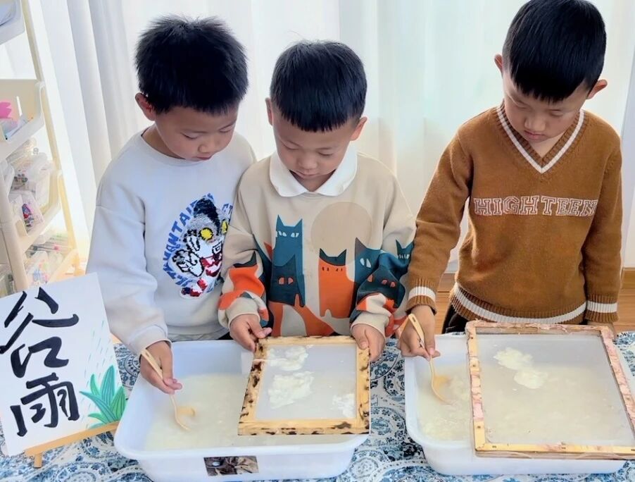 作为吕剧发源地,牛庄镇深耕本土文化沃土,打造“流动的吕剧课堂”。非遗传承人走进校园、深入乡村,手把手传授技艺;时殿元吕剧艺术馆内,沉浸式体验活动有序开展,让孩子们在经典选段的传唱中,真切感受传统艺术的独特魅力。牛庄镇中心幼儿园常态化开展各类传统文化活动,结合二十四节气在谷雨时节组织制作花草纸、播种育苗,让幼儿感知节气文化内涵;依托传统节日开展冬至包水饺、中秋猜灯谜等特色活动;在文化体验课堂上,搭配水墨初体验、毛笔书法、手工折纸等趣味活动,以可感、可触、可参与的方式,让孩子们领略传统文化之美,在潜移默化中培育文明根脉,增强文化自信与传承自觉。