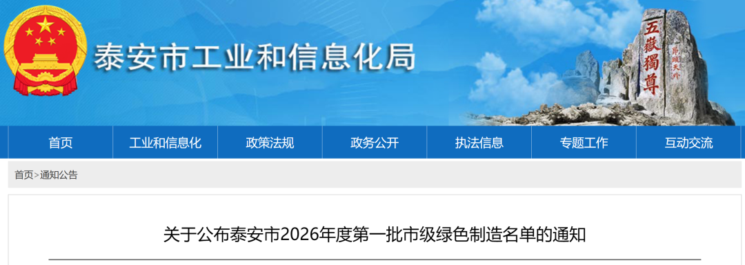 关于公布泰安市2026年度第一批市级绿色制造名单的通知