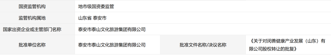1元转让49%国有股权,泰山文化旅游集团批准子公司退出闵善健康产业发展(山东)有限公司