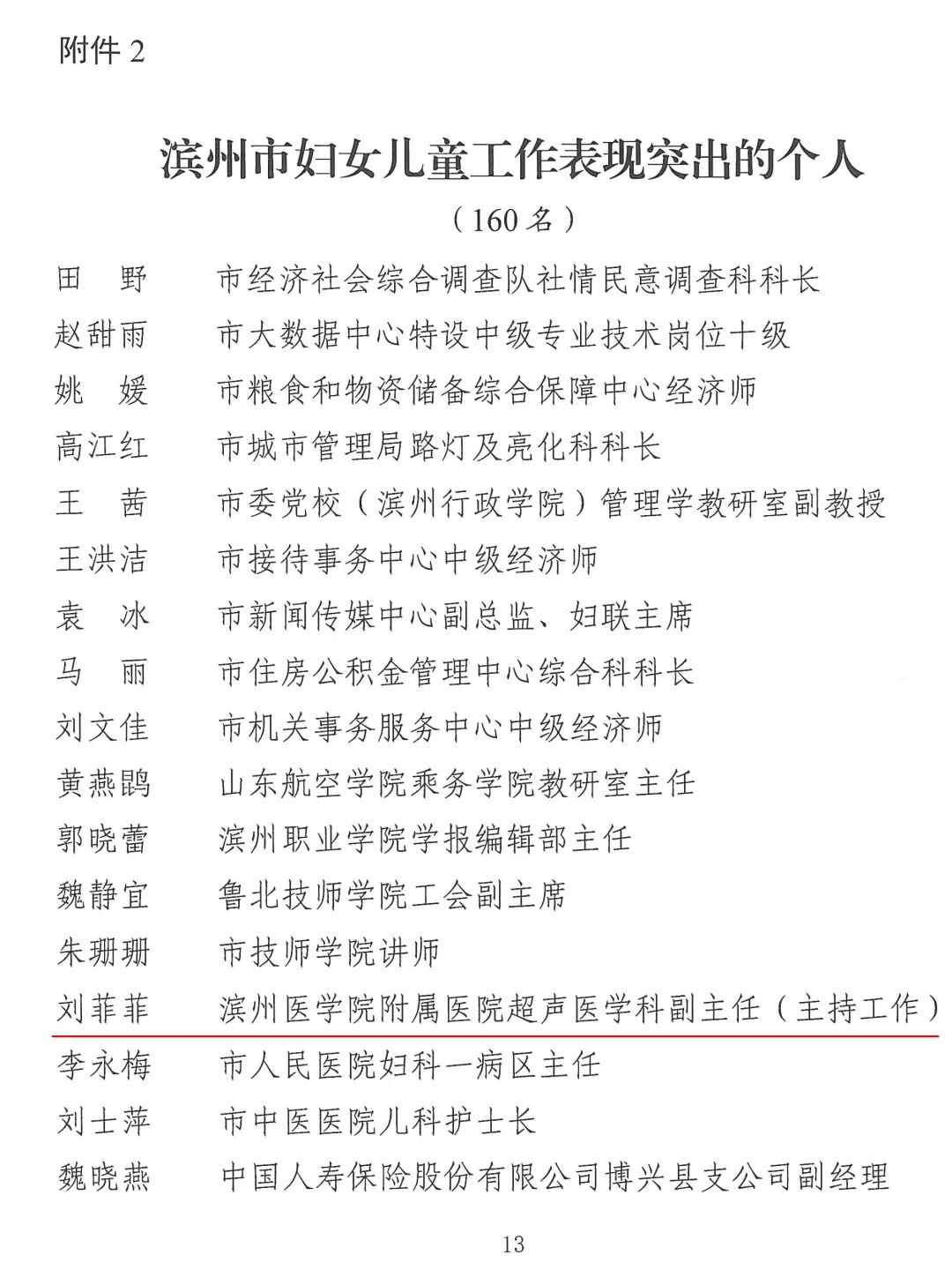近日,滨州市妇女联合会发布通报,对全市妇女儿童工作中表现突出的先进集体和先进个人予以表彰。滨州医学院附属医院超声医学科刘菲菲凭借在妇幼健康保障与超声诊疗等领域的突出贡献,荣获“滨州市妇女儿童工作表现突出个人”称号。
